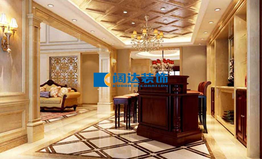 歐式風格裝修以其典雅高貴的氣質為主要特色,各個空間采用歐式吊頂及石膏線進行分割和裝飾,既統一又有區別,地面采用瓷磚鋪貼,精心設計的花紋顯示了歐式設計的高雅與品質,無論是材料的選擇、家居的造型還是房間的配飾,都透露出尊貴與典雅,歐式布藝沙發,華麗的吊燈,歐式家具即成了充滿歐式風格大廳的視覺焦點,優美的線條配以曲線的造型裝飾令整個空間華貴而雅致。