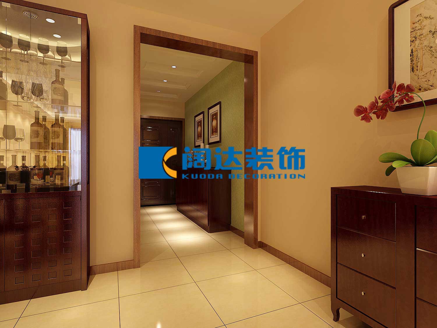 后期搭配窗簾,裝飾品,和水墨畫來增添室內(nèi)的靈動感和室內(nèi)整體空間塊體平衡比例的搭配和協(xié)調(diào)。通過色調(diào),燈具,家具,裝飾品,掛畫等軟裝的設(shè)計把業(yè)主的品味和生活情趣體現(xiàn)在整個案例里。