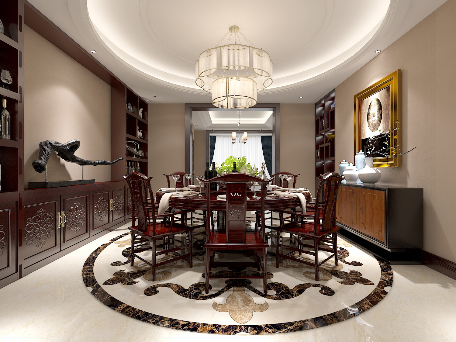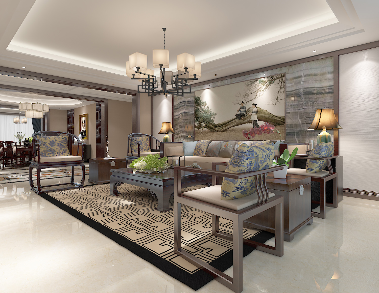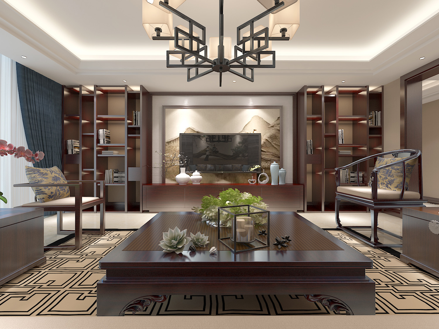 本案中的360平米的三居室整體采用了新中式風格裝修,新中式風格的設(shè)計不拘泥于傳統(tǒng)的中式元素,而是在繼承古典的基礎(chǔ)上融入現(xiàn)代的特色,將兩者有機地統(tǒng)一起來,作品表達出現(xiàn)代人對于中式風格低調(diào)沉穩(wěn)的精神境界的追求。