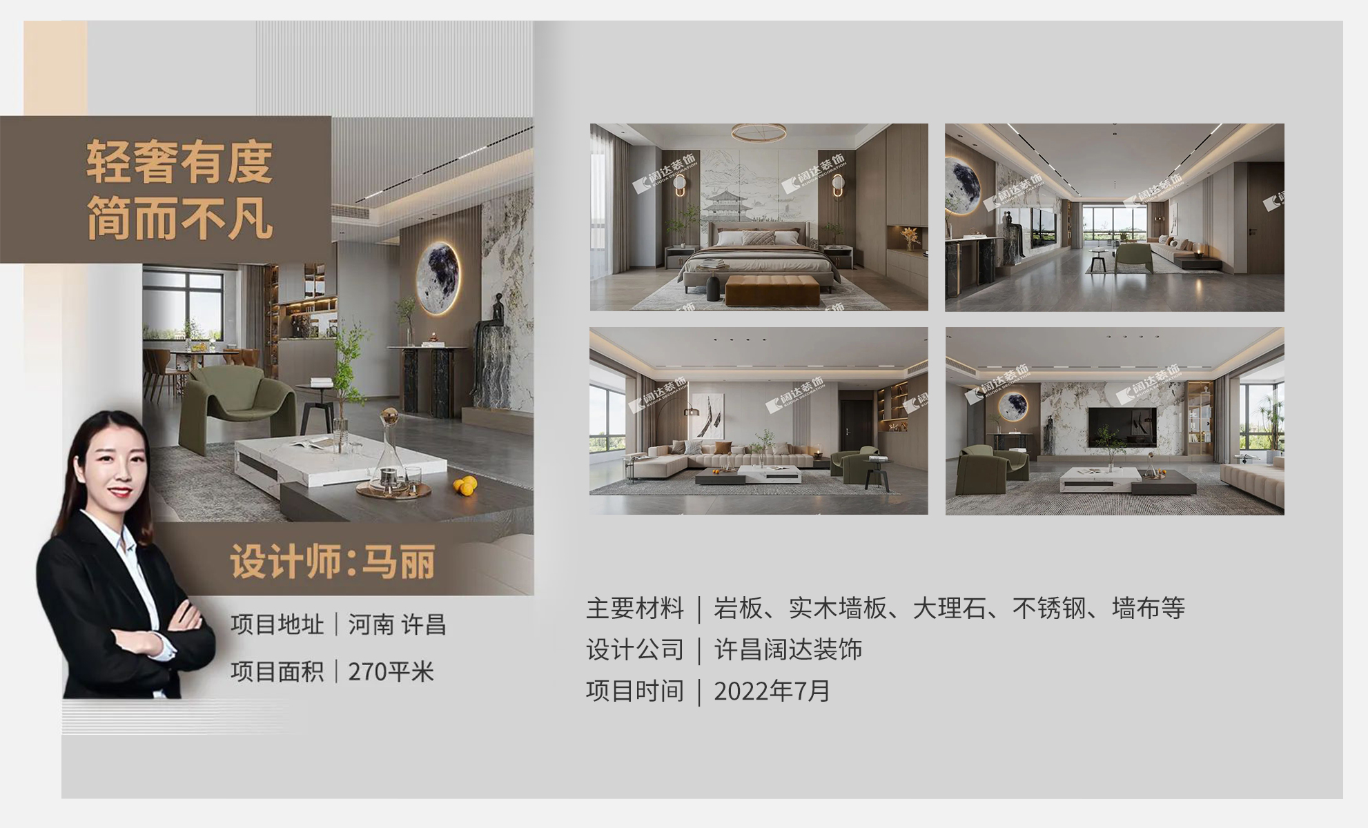 本案充分體現了此次大賽的主題——家·融合。將多種材質和諧運用在家居空間內,整體感覺現代簡潔、大氣奢華。