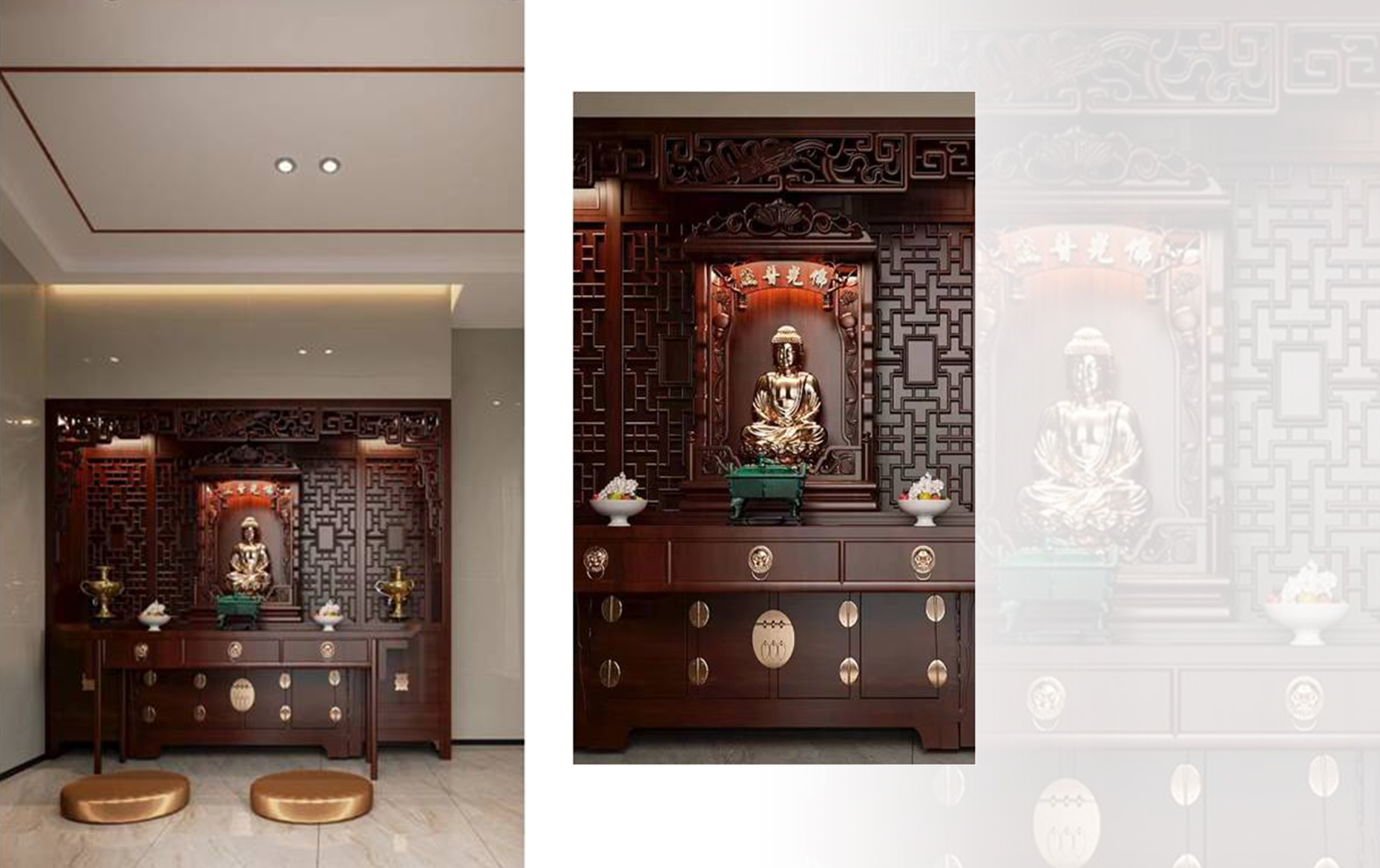 在都市中,佛堂,一方安頓心靈之所。一張供案,一方佛龕,一處禮佛與休閑結(jié)合的空間。去除憂煩,凈化身心,一日三省吾身。在這里,心有常清凈,無(wú)風(fēng)自清涼。在這里,心有山海,靜而不爭(zhēng)。在這里,任世事變化,尋一處心安