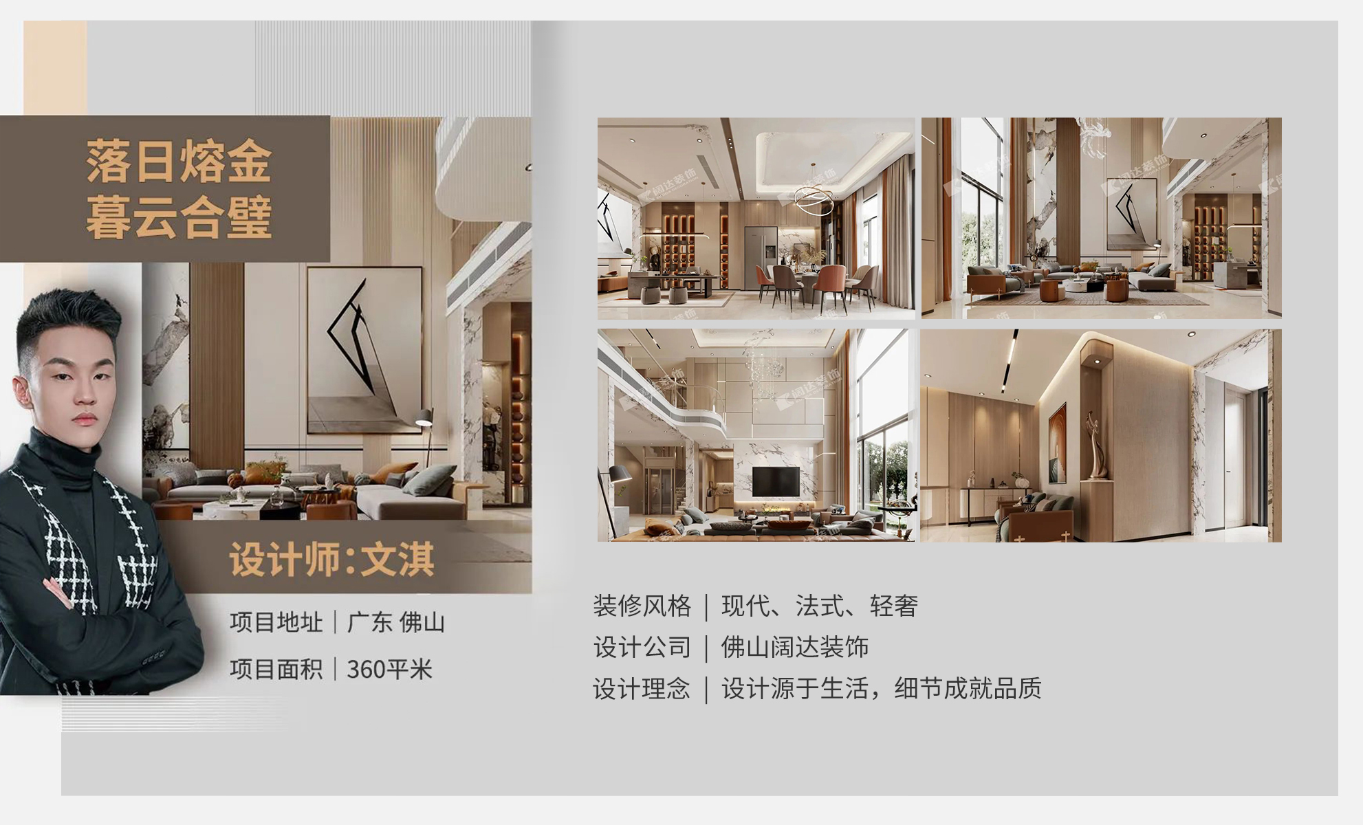 | 設(shè)計(jì)風(fēng)格 | 現(xiàn)代、法式、輕奢 | 戶型案例 | 案例面積 | 360m2 | |