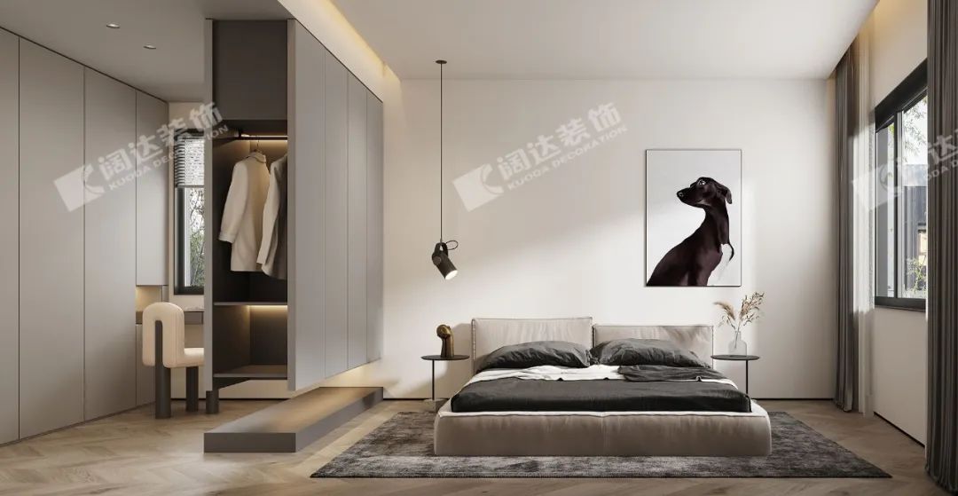 在個(gè)人獨(dú)立空間,針對(duì)每個(gè)房間使用者的生活習(xí)慣、需求去設(shè)立專(zhuān)屬他們的自在空間。比如進(jìn)入房間隨手放置雜物的平臺(tái)、掛置外衣的區(qū)域、長(zhǎng)輩房的起夜燈又或者喜好的色系等。