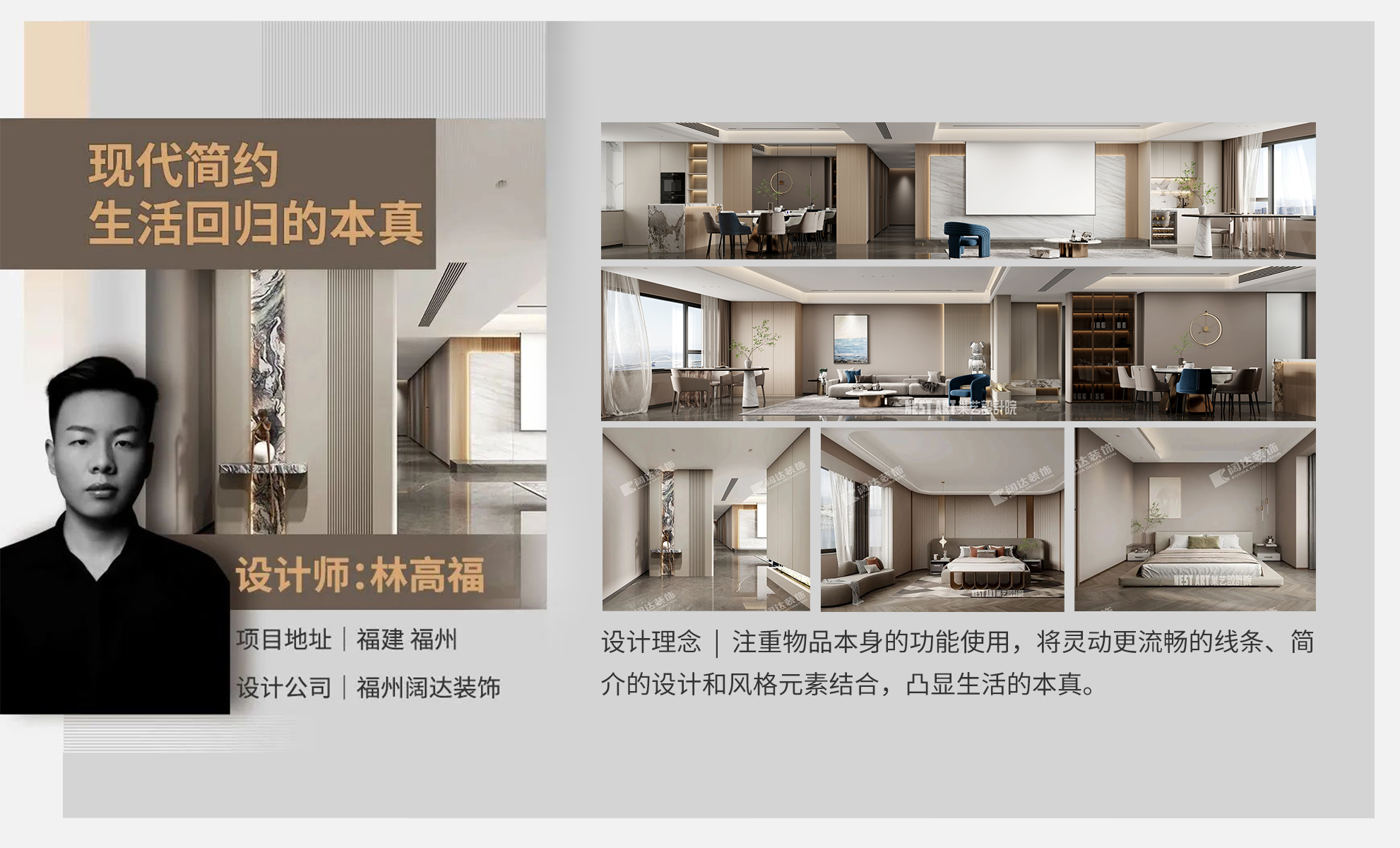 著重用空間處理的設(shè)計手法,來強調(diào)空間的靈活分割,以追求設(shè)計的幾何性和秩序感,空間線條簡約、流暢。