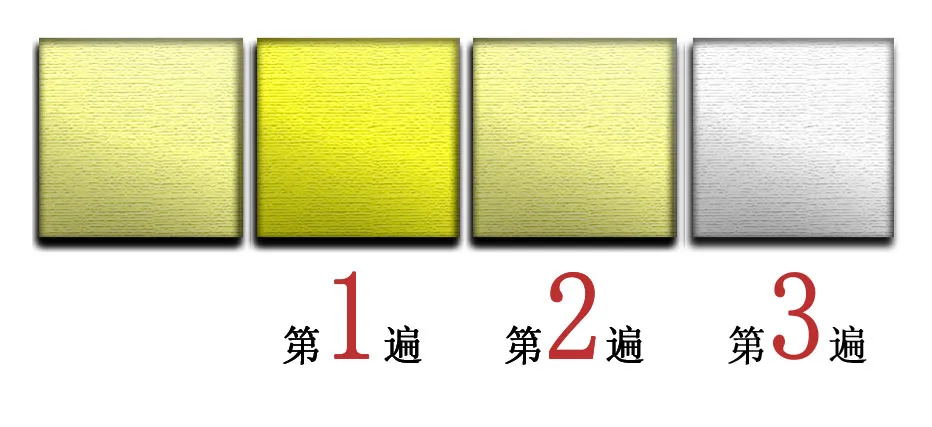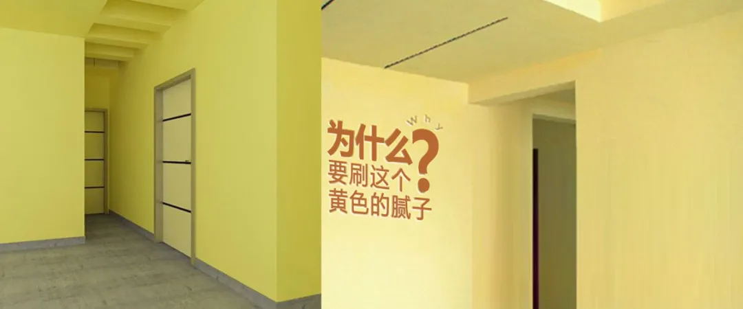 傳統的白色膩子是無法實現對乳膠漆涂刷遍數和涂刷濃度的自檢功能的。而闊達專利技術之一,黃色墻襯恰恰能實現這一功能。因為如果乳膠漆兌水比例超出標準范圍,在乳膠漆涂刷過程中,油工無論涂刷多少遍,這個黃色的墻襯也是遮蓋不住的,乳膠漆干燥后墻面是花的,一團一團的不規則的黃色,也就是俗稱的“透底”(見上圖示例)。